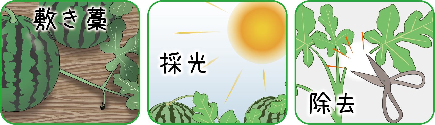 炭疽病は定植時から、つる枯病は栽培中期からが要注意。