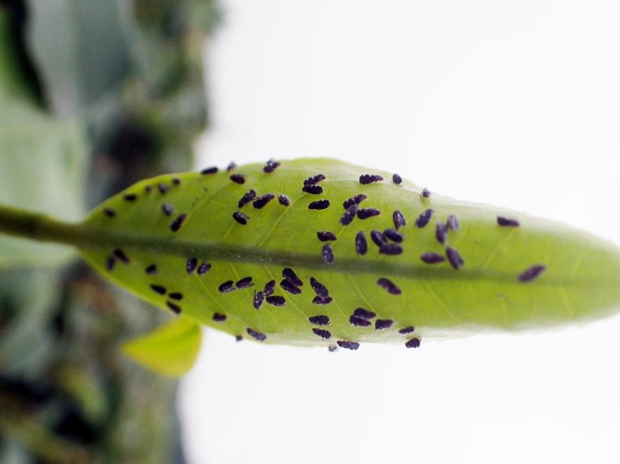 - ふ化後若齢幼虫期に、裾部や葉裏にムラなく、しっかり散布する。