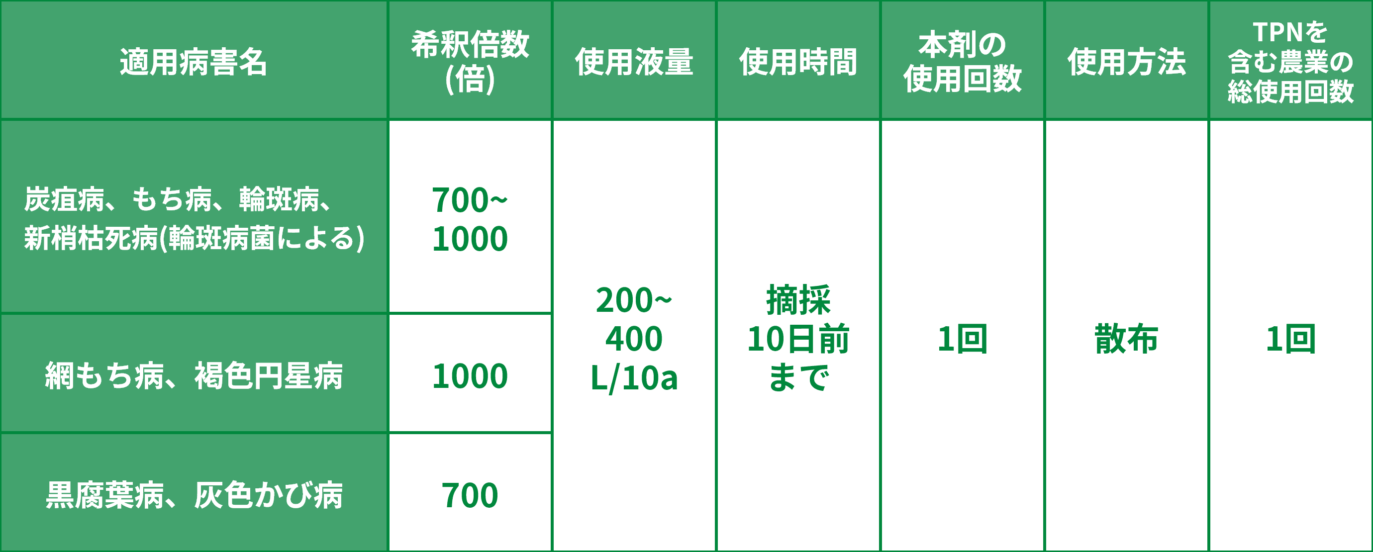 有効成分TPNは耐性菌リスクが低く、耐性菌の発現が問題となった報告はありません。だから、各茶期一回使用OK!