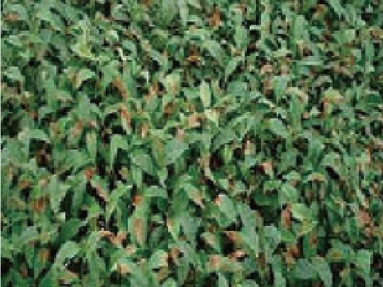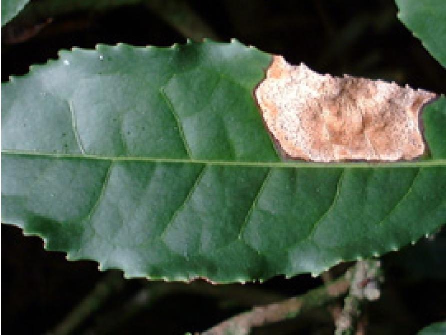 - 二・三番茶の摘採残葉発病も多発すると、慢性的に樹勢に影響。更にその後の茶期も減収。