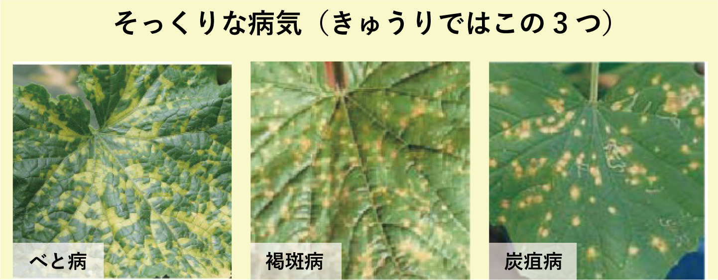 発生状況:褐斑病/極少発生、べと病/甚発生、うどんこ病/甚発生