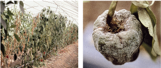 - ●多湿下の施設栽培での発生が多い。露地栽培でも発生する。