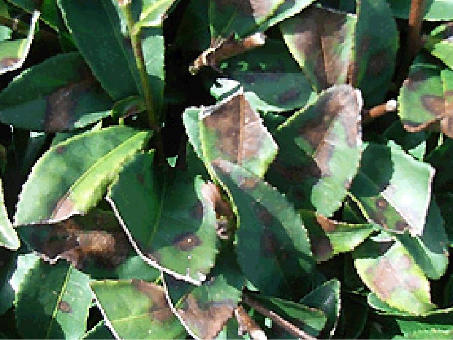 - 発生園では一番茶後に中切りや深刈りによって病葉、病枝条を切除し、伝染源を少なくする。幼木園では防風ネット等を設置し、強風から守る。