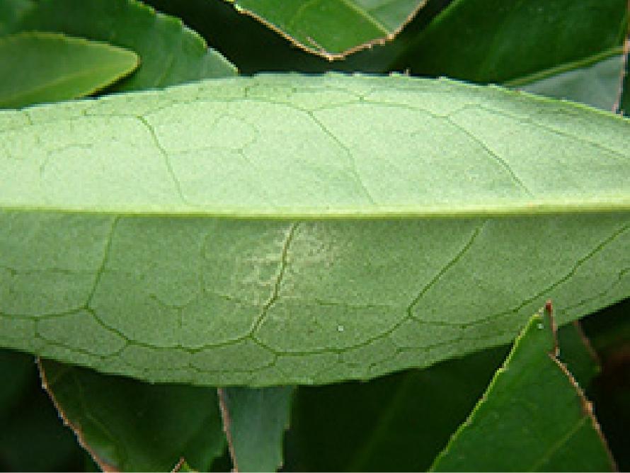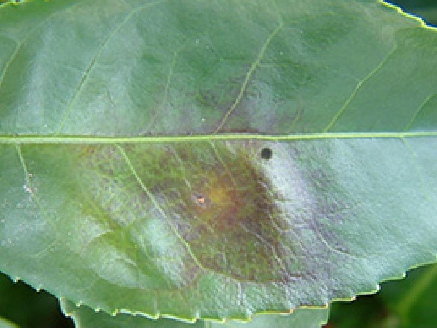 - 秋芽生育期に発生。8月下旬~9月上旬に秋芽の新葉に感染し、11月頃成葉に発病。