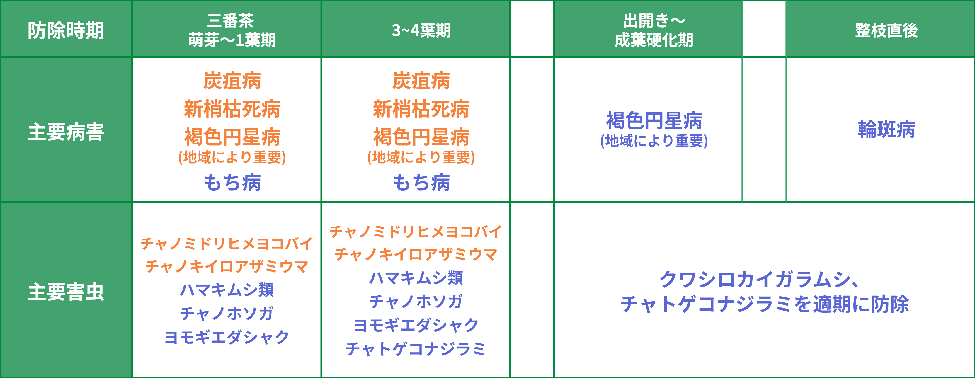 - 地域・気象条件などにより茶の生育及び病害虫の発生状況は異なります。