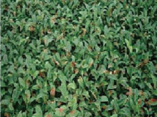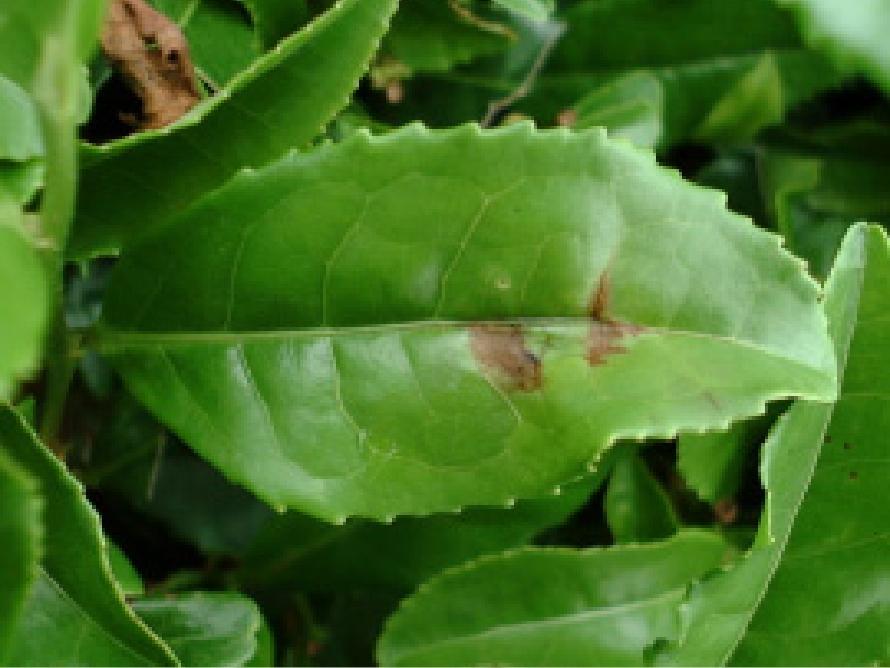 - 二・三番茶の摘採残葉発病も多発すると、慢性的に樹勢に影響。更にその後の茶期も減収。